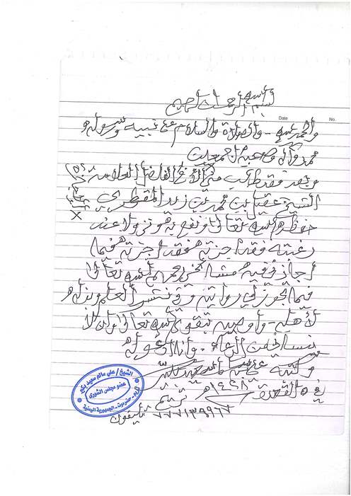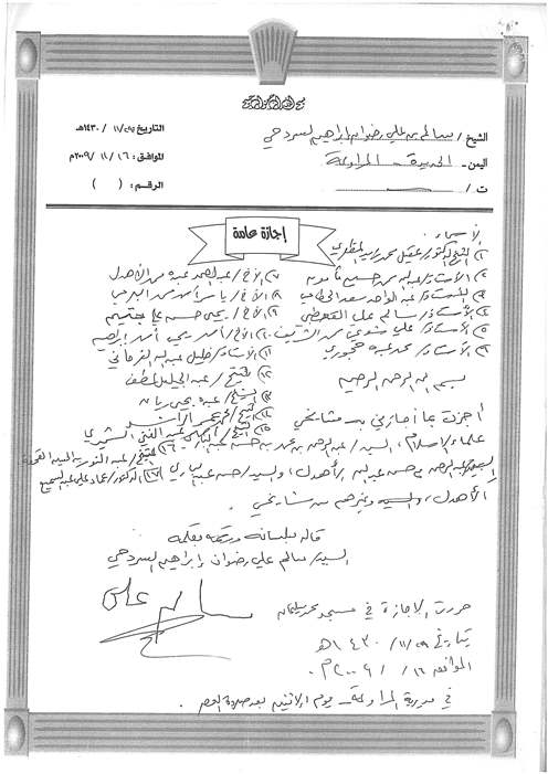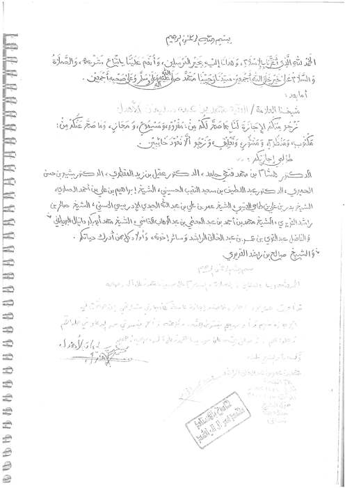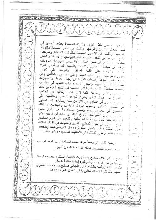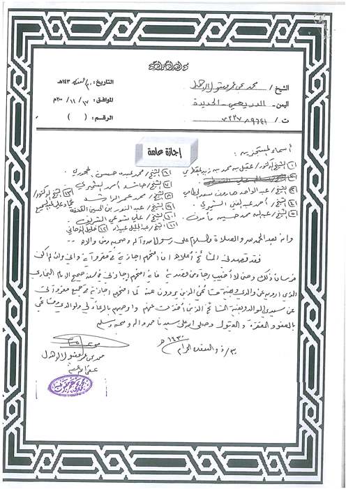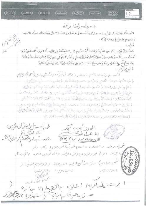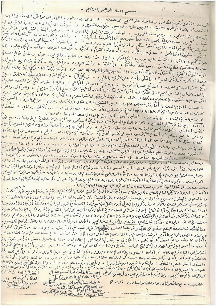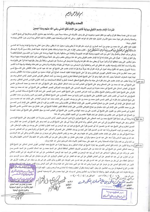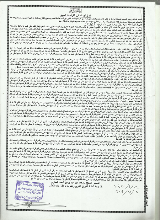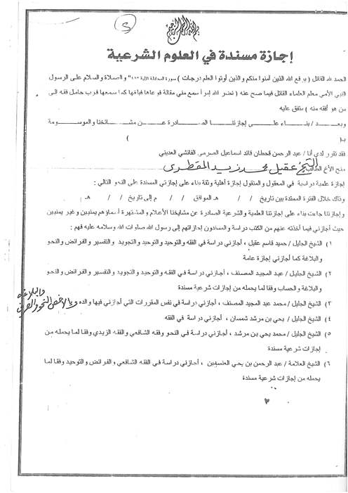 إجازة من الشيخ محمد بن يحي بن حمود الهجامإجازة من الشيخ محمد ببن زين العابدين الحلبيإجازة من الشيخ محمد بن مهدي الساري 3إجازة من الشيخ محمد بن مهدي الساريإجازة من الشيخ القاضي محمد بن إسماعيل العمرانيإجازة من الشيخ محمد بن عمر مقبول الأهدلإجازة من الشيخ عبد الله بن أحد الناخبيإجازة من الشيخ محمد الصادق المغلسإجازة من الشيخ سليمان بن محمد بن عبد الوهاب الأهدلإجازة من الشيخ محمد بن مهدي الساري 2إجازة من الشيخ علي بن المفتي سالم بن سعيد بكير باغيثانإجازة من الشيخ سالم بن علي رضوان بن إبراهيم السردحيإجازة من الشيخ علي سالم بكيرإجازة من الشيخ عبد الرحمن قحطان الفائشي العدينييتبع إجازة من الشيخ عبد الرحمن قحطان الفائشي العدينييتبع إجازة من الشيخ عبد الرحمن قحطان الفائشي العدينيإجازة من الشيخ عبد الرحمن بن إسماعيل الوشليإجازة من الشيخ أحمد عالي محمد عبد الرحمنإجازة من الشيخ محمد بن أحمد بن محمد الكبسيإجازة من الشيخ عباس بن أحمد الخطيب المتوكلإجازة من مجموعة من الشيوخإجازة من الشيخ حمود أحمد شميلةإجازة من الشيخ حميد أحمد عقيلإجازة من مجموعة من الشيوخإجازة من الشيخ حمود بن عباس المؤيدإجازة من مجموعة من الشيوخ